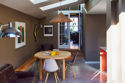The doors to the extension are sliding folding doors which connect the inside to an enlarged patio area to be used for entertaining.