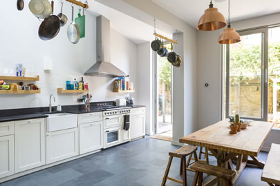 The Victorian rear addition was remodelled, and a slate-clad loft extension added, to accommodate two additional bedrooms, a second bathroom and a small utility room.