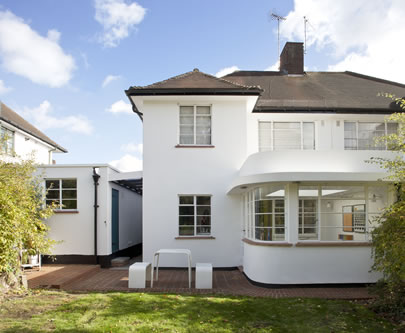 Hutchings Walk is a semi-detached 1930s cottage-style white render house located in the Hampstead Garden Suburb. The client wanted to add a sun room extension to the rear of the house to serve as a playroom / work space and to enhance the relationship of the house with the generous garden. The proposed form echoes the original shapes and features of the house, including Crittall windows to original design, whilst incorporating essential contemporary features such as a large horizontal skylight and underfloor heating connected to the house heating system.